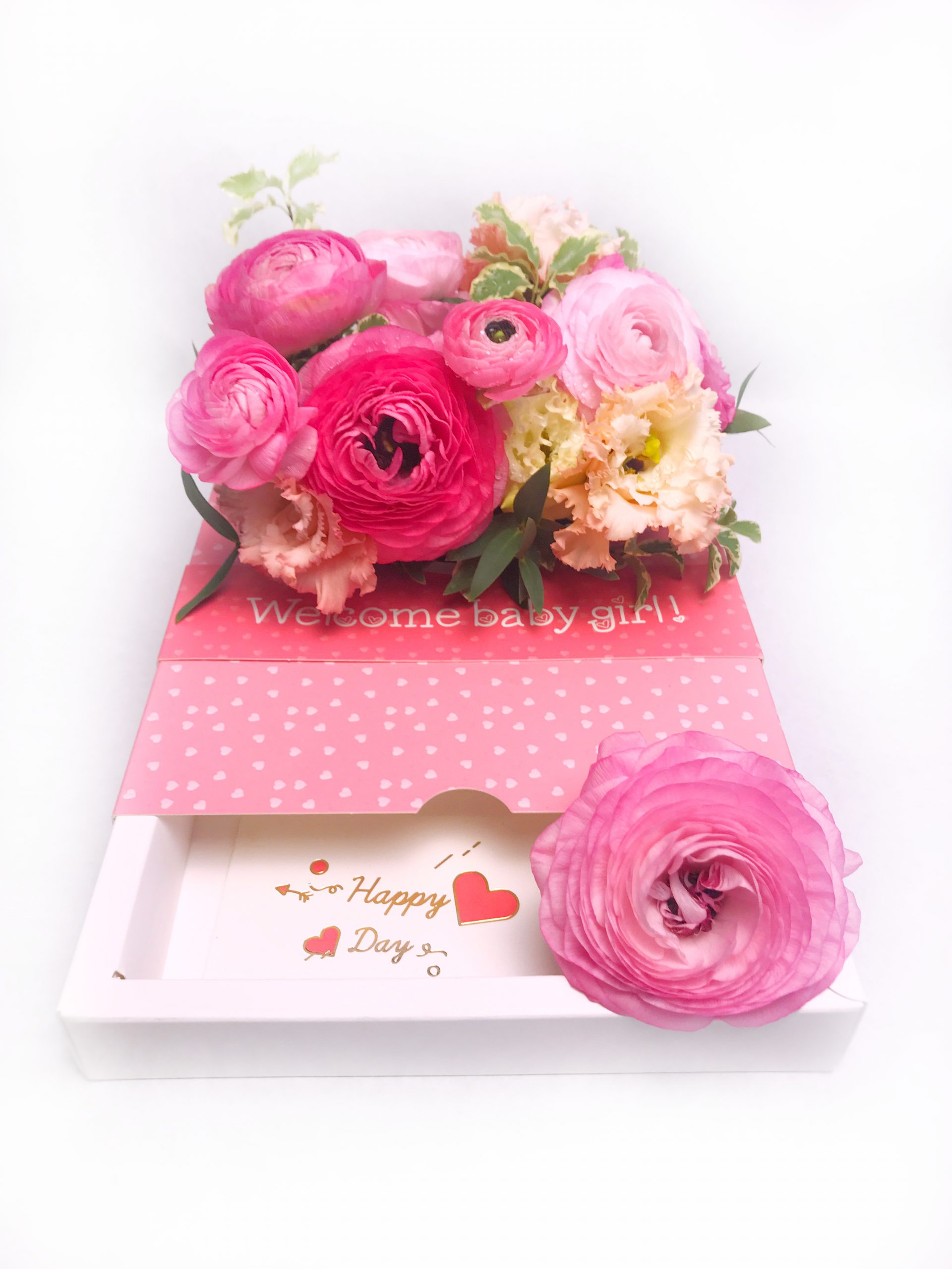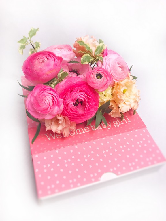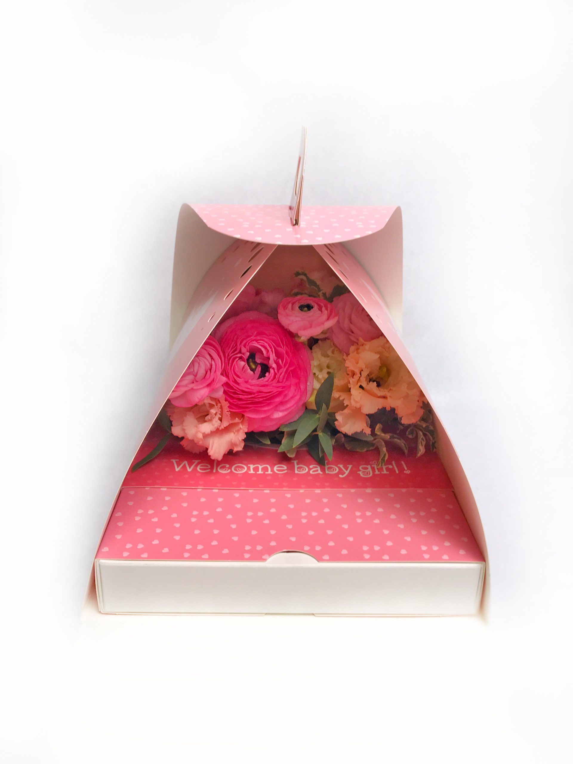 Momentele emoționante se sărbătoresc cu acest Aranjament floral Baby girl! Surprinde frumos pe cea mai proaspătă mămică cu flori surpriză, care emoționează, bucură și apreciază atenția ta. Florile vin ambalate într-o cutie surpriză care va trezi un mare interes asupra cadoului.