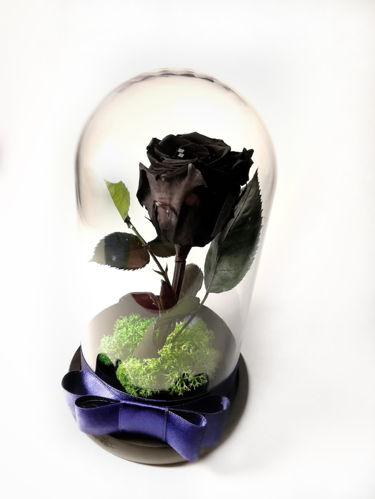 Atat de misterios si romantic, trandafirul negru in cupola eleganta de sticla duce cu gandul la promisiuni si declaratii de iubire, intr-un mod autentic.